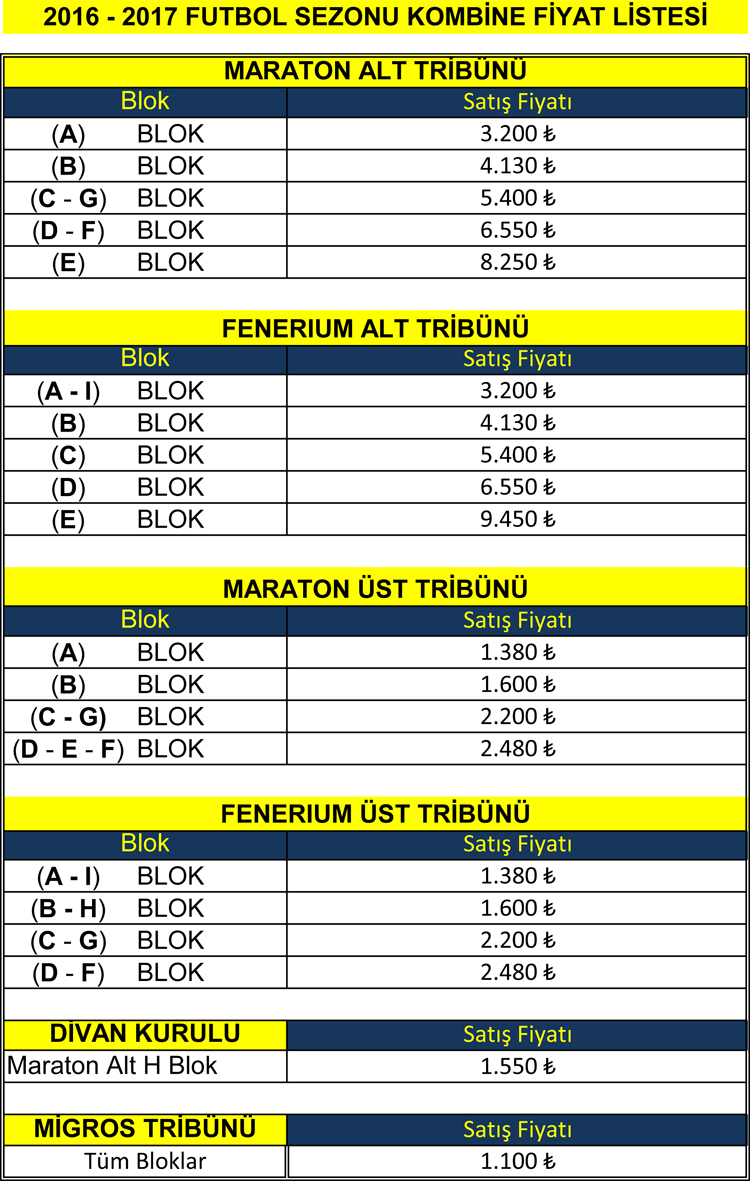 Kombine alacak taraftarlarımızın, Fenerbahçe Logolu Passolig Kart sahibi olmaları gerekmektedir. (Passolig kartı olan taraftarlarımızın yıllık kullanım süresi otomatik uzatılacağından kombine satışları esnasında 21,00 TL vizeleme bedeli ayrıca tahsil edilecektir.)