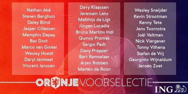 Hollanda Milli Takımı'nın Fas, Fildişi ve Lüksemburg ile oynayacağı maçların kadrosu açıklandı.