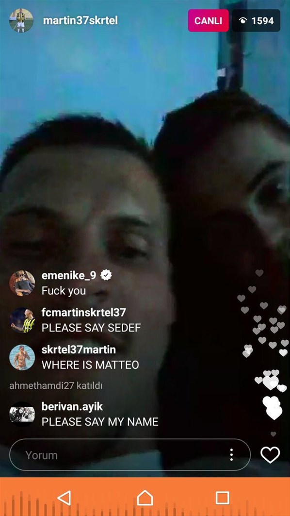 Emenike, Martin Skertel'in sosyal medya hesabından yaptığı canlı yayına katılarak 'Fuck you' mesajını bıraktı.