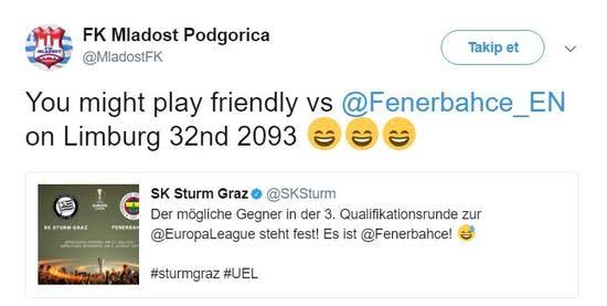 Fenerbahçemizin UEFA Avrupa Ligi 3. ön elemedeki muhtemel rakipleri Sturm Graz ile Mladost Podgorica, sosyal medyadan atıştı.