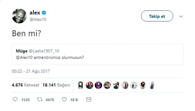 Dün gece alınan beraberliğin ardından taraftarlar tepkilerini farklı yollarla göstermeye devam etti. Bir taraftar sosyal medyada Alex'e; ''Antrenörümüz olur musun?'' diye sordu.
