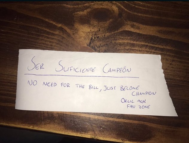 Brezilyalı yıldız 90 dakika bitiminde hesabı istedi. Fenerbahçe tribünlerinin uğrak mekanı olan kafenin sahibi, Fernandao'ya hesap yerine şu mesajı yolladı: "Hesaba gerek yok, şampiyon olun yeter."