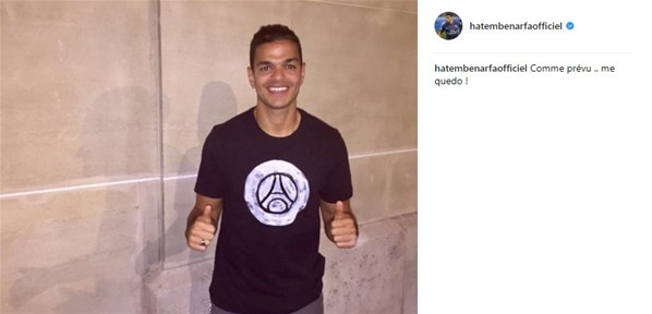 Hatem Ben Arfa, kişisel Instagram hesabından, PSG'de kalacağını açıkladı. Ben Arfa yaptığı açıklamada "Beklendiği gibi, kalıyorum" ifadesini kullandı.