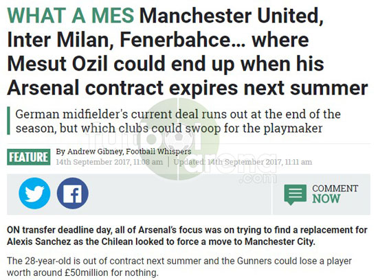 Transfer döneminde sarı lacivertlilerle adı anılan Mesut Özil'in gelecek yaz için İstanbul'a gidebileceği iddia edildi. The Sun'da yer alan iddiaya göre Mesut Özil için Inter, Manchester United, Milan ve Fenerbahçe devrede. Yıldız oyuncunun, Türk güzel Amine Gülşe ile aşk yaşaması ve sık sık İstanbul'a gelmesi nedeniyle Fenerbahçe'nin elinin güçlü olduğu ve cazip bir teklif yapması halinde transfer olabileceği kaydedildi.