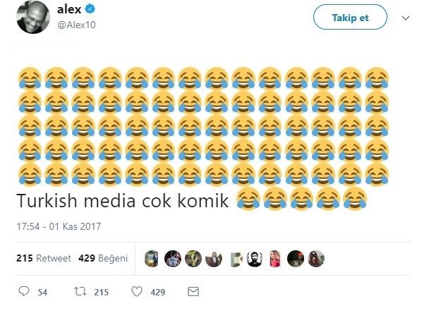 Brezilyalı yıldız bu haberler üzerine sosyal medya hesabından imalı bir paylaşım yaptı. Alex, "Türk medyası çok komik" yazarak çıkan haberleri yalanladı.