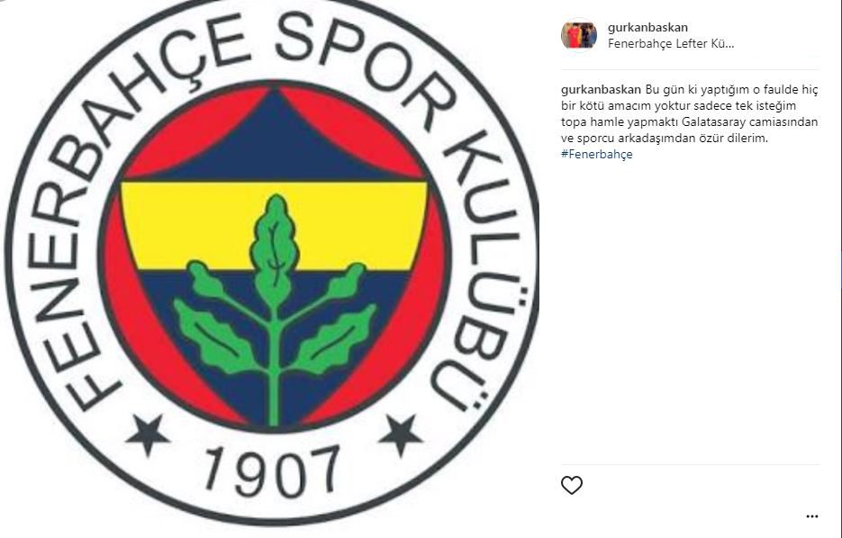 Yaşanan bu olay sonrası genç futbolcu Gürkan Başkan, sosyal medya hesabından paylaştığı mesajla hem rakibi hem de Galatasaray camiasından özür diledi.