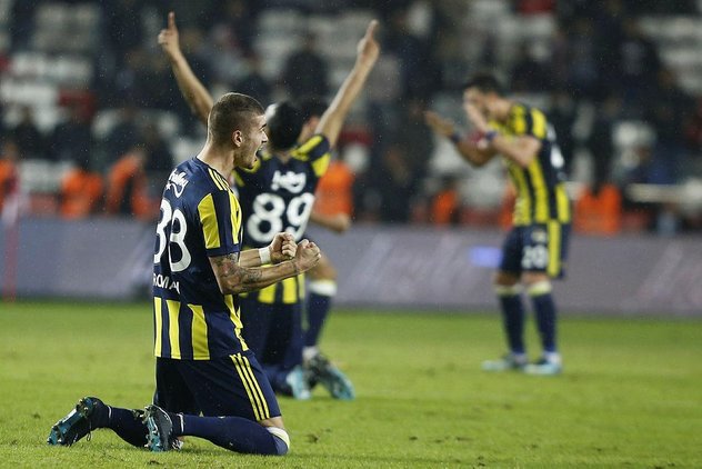 Fenerbahçe'nin Antalyaspor'u 1-0 yendiği maçın bitiş düdüğü çaldıktan sonra sarı lacivertli futbolcular ilginç bir görüntü oluşturdu.