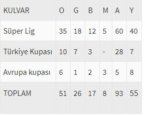 Son 7 senenin en kötü galibiyet yüzdesine sahip olan Fenerbahçe, bu yıl Süper Lig'de 35, Avrupa'da 6, Ziraat Türkiye Kupası'nda ise 10 maç oynadı.