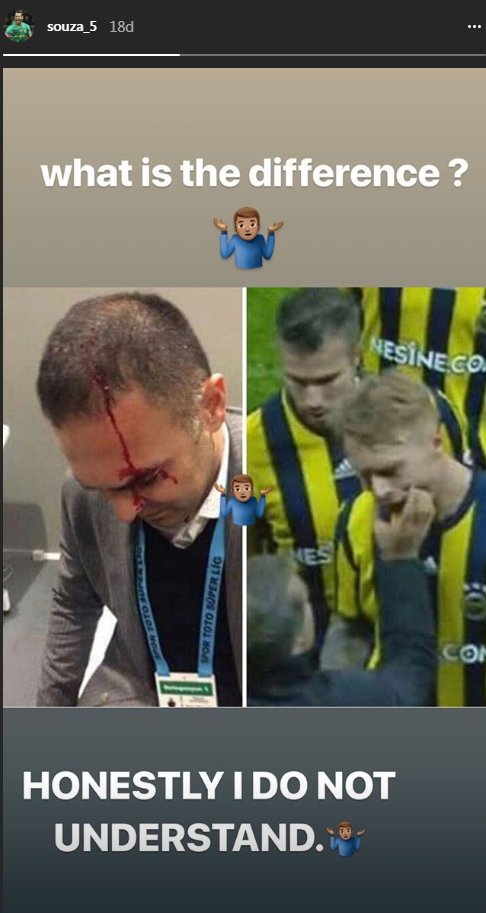 Fenerbahçe'nin Brezilyalı orta sahası Josef de Souza, tatil edilen Beşiktaş derbisinin ardından Instagram'dan tepki gösteren bir paylaşımda bulundu.