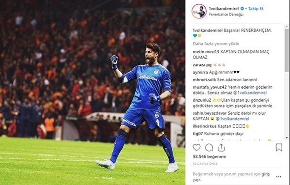 Fenerbahçe'nin tecrübeli eldiveni Volkan Demirel, bu akşam oynanacak derbiyle ilgili sosyal medya hesabından paylaşımda bulundu.