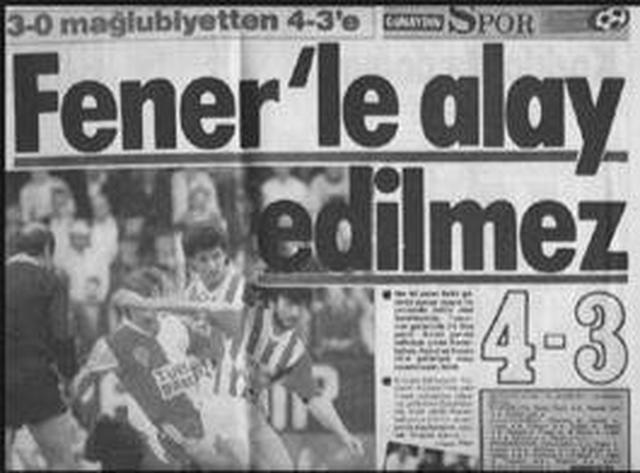 2-2'lik maçın bir benzeri 3 Mayıs 1989'da oynanan kupa maçında yaşanmış ve Fenerbahçe o gün 0-3'ten dönerek ezeli rakibini 4-3 yenmişti. İlk yarıda Tanju'nun hat-trick'i ile 3-0 öne geçen Galatasaraylı futbolcular saha içinde röveşata denerken, tribünler de tıpkı son derbideki gibi 'oley' tezahüratı yapmışlardı. Ve bu hareketlere hırslanan Fenerbahçe ikinci yarı 4 gol birden atıp maçı kazanmış ve turu geçmişti.