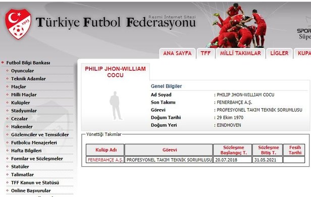 Hollandalı hocanın sözleşmesinin 6.5 milyon Euro’luk tazminatından dolayı feshedilemediği öne sürülüyor. TFF’nin resmi sitesinde de Cocu, F.Bahçe’nin hocası olarak gözüküyor.