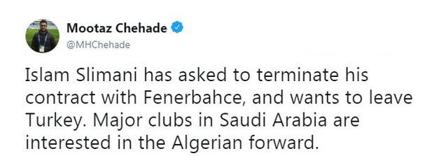 Lübnanlı gazeteci Mootaz Chehade'ın resmi Twitter hesabından duyurduğu habere göre Slimani, Fenerbahçeli yöneticilerle görüşerek sözleşmesinin feshedilmesini talep etti.