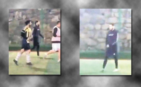 Çalışmalarını tek başına sürdüren Cezayirli orta saha oyuncusu halı sahada maç yaparken görüntülendi.