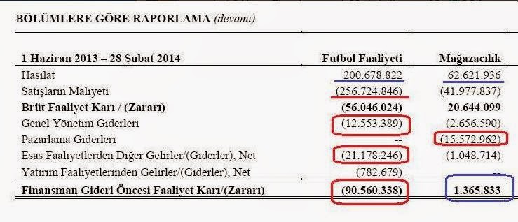 5 ) Futbol takımının sahibi olan GS Sportif AŞ’nin, 2013 – 2014 sezonunda futbol faaliyetlerinden doğan gelirleri 28 Şubat 2014 itibariyle 200.678.822 TL olup, giderler 291.239.160 TL olarak gerçekleşmiş, 90.560.338 TL Futbol faaliyeti ZARARı oluşmuştur.