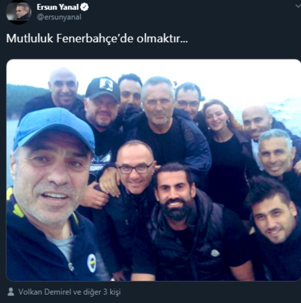 Yanal, Volkan Demirel'in de içinde bulunduğu ve teknik heyetin yer aldığı bir fotoğraf paylaşarak, "Mutluluk Fenerbahçe'de olmaktır" notunu düştü.