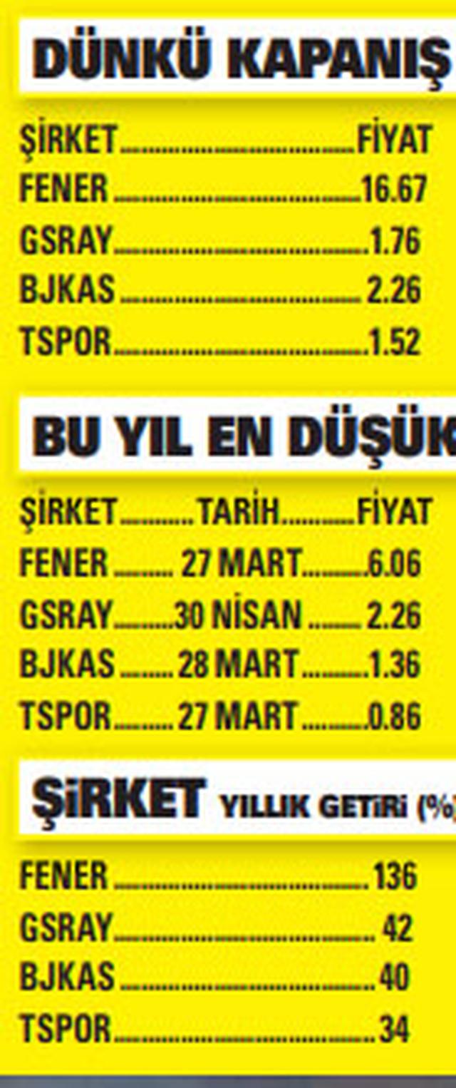 Borsada işlem gören bir başka spor kulübümüz Trabzonspor’un da piyasa değeri son dönemde hızlı bir yükseliş gerçekleştirdi. 27 Mart 2019’da 200 milyon düzeyine gerileyen Bordo-Mavili şirketin piyasa değeri dün 345 milyon düzeyindeydi. Bu performansıyla yıl başından beri yatırımcısına en çok kazandıran şirket yüzde 136’lık artışla Fenerbahçe olurken, onu yüzde 42’lik artışla Galatasaray takip etti. Beşiktaş, yüzde 40’lık artışla taraftarına en çok kazandıran üçüncü spor şirketi oldu. Trabzonspor yüzde 34’le yatırımcısına en az kazandıran spor şirketi.