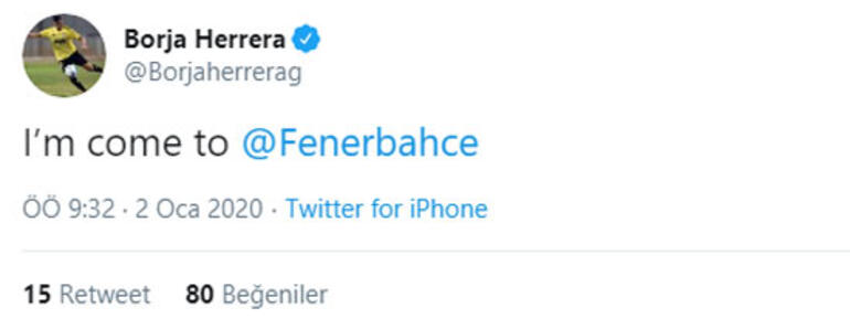 Fenerbahçe devre arası transfer için çalışmalarına başlarken Borja Herrera'dan Fenerbahçe çıkışı geldi. Herrera sosyal medya hesabından "Fenerbahçe'ye geliyorum" yazdı.
