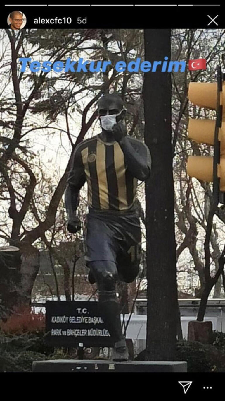 Fenerbahçe'nin efsane futbolcularından Alex de Souza, kişisel Instagram hesabından Kadıköy'deki heykeline maske takılmasına teşekkür etti.