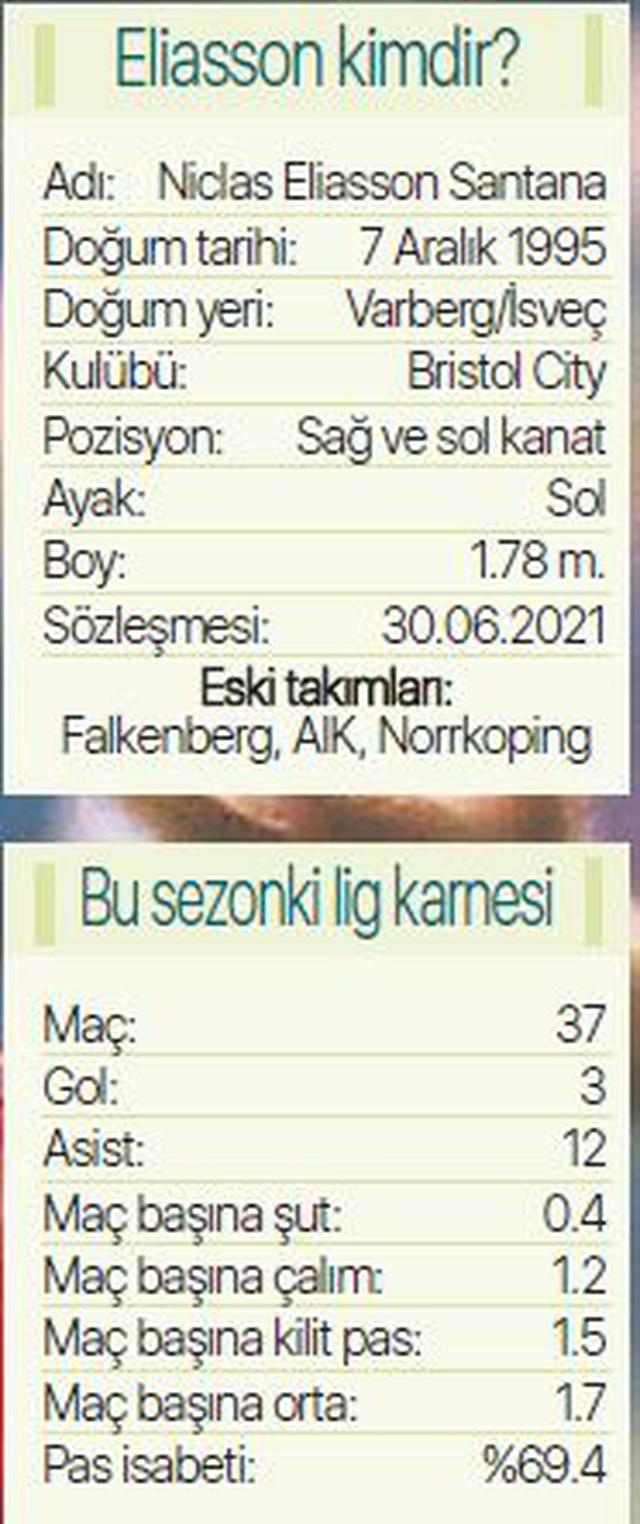 Fenerbahçe, kanat oyuncularından beklediği verimi alamadı. Sezon başında takıma katılan Garry Rodrigues ve Deniz Türüç, skora katkı anlamında büyük hayal kırıklığı yaşattı. Bu nedenle yeni sezon öncesinde kanada takviye yapılmasına kesin gözüyle bakılıyor. İngiliz basınına göre adaylardan biri Niclas Eliasson. 24 yaşındaki oyuncu, Championsip’te Bristol City formasıyla çok iyi bir sezon geçirdi. İsveçli yıldız 37 lig maçında 3 gol ve 12 asistlik katkı sağladı.