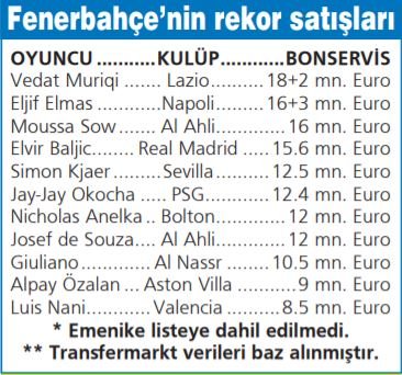 180 bin Euro'ya alınan Eljif Elmas 16 milyon Euro artı bonuslara Napoli'ye satıldı. 3.5 milyon Euro'ya gelen Vedat Muriqi'ten de hatırı sayılır bir kâr edilecek. Ucuza alıp yüksek fiyata satma modelini yerleştiren sarı-lacivertliler, Avrupa'daki örnek kulüpler arasına girmek istiyor. Ali Koç başkanken satılan Josef, Giuliano ve Fernandao'dan da kulübe önemli gelir sağlandı; son üç yılda kasaya 60 milyon Euro girdi.