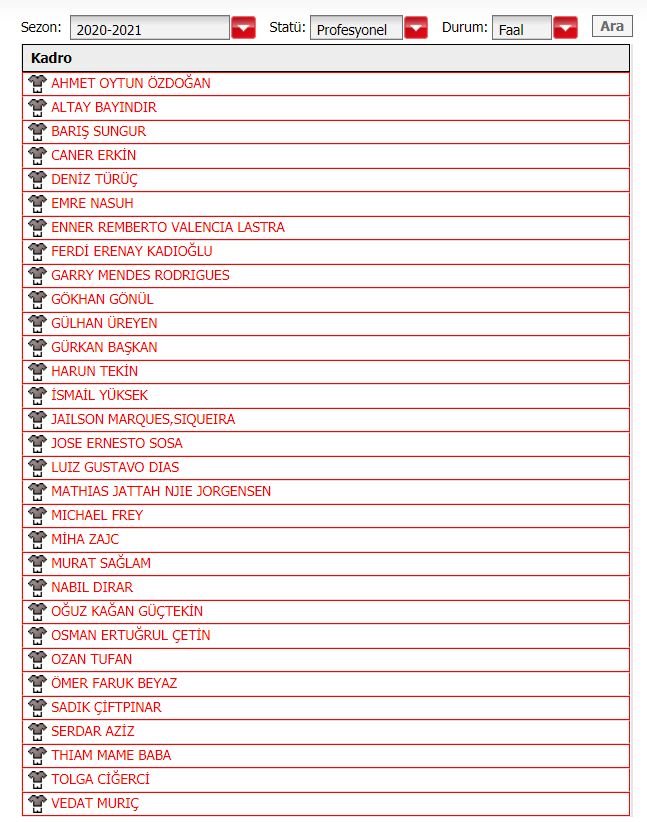 Mert Hakan Yandaş, Filip Novak, Sinan Gümüş ve Mauricio Lemos dışında tüm futbolcuların lisansı çıkarıldı.