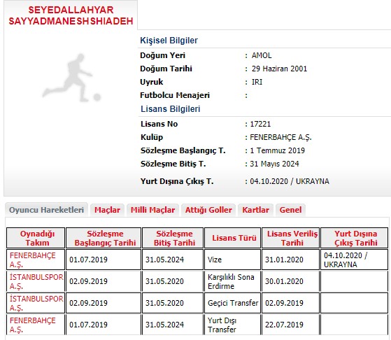 Sarı-lacivertli kulüp, İranlı golcünün Ukrayna Ligi ekiplerinden Zorya Luhansk'a kiralandığını TFF'ye bildirdi.
