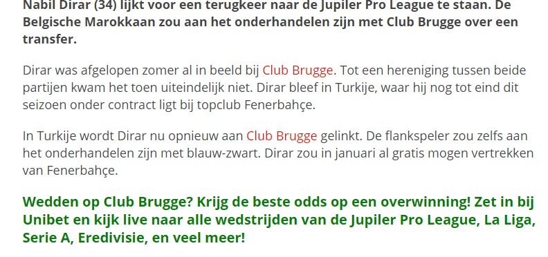 Nabil Dirar, Ocak'ta Club Brugge'a transfer olacak. Görüşmelerde son aşamaya gelindi.