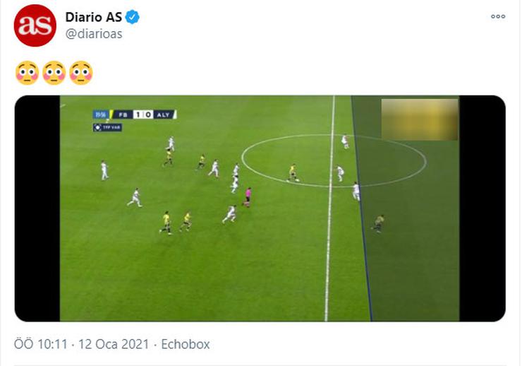 Süper Lig'in 17. haftasında Fenerbahçe'nin sahasında Alanyaspor'u 2-1 yendiği maçta VAR tarafından çekilen ofsayt çizgisi dünya gündeminde. İspanya'da Diario AS Twitter hesabından o anı takipçileri ile paylaştı.