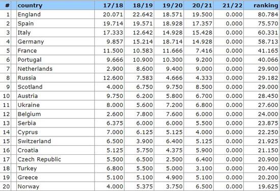 Güncel önümüzdeki sezonun ülke puanları sıralaması