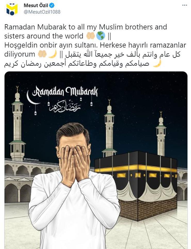 Mesut Özil paylaşımını İngilizce, Arapça ve Türkçe yaparken "Hoş geldin on bir ayın sultanı. Herkese hayırlı ramazanlar diliyorum" notunu düştü.
