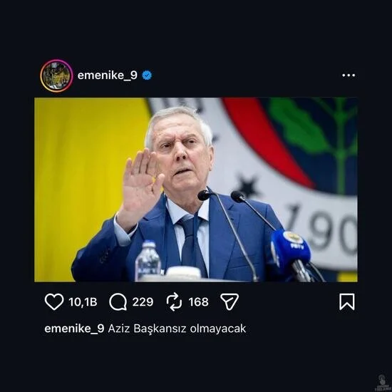 Sarı-lacivertli ekibin eski başkanlarından Aziz Yıldırım için paylaşımda bulunan Emenike, kısa ama çarpıcı bir mesaj verdi.