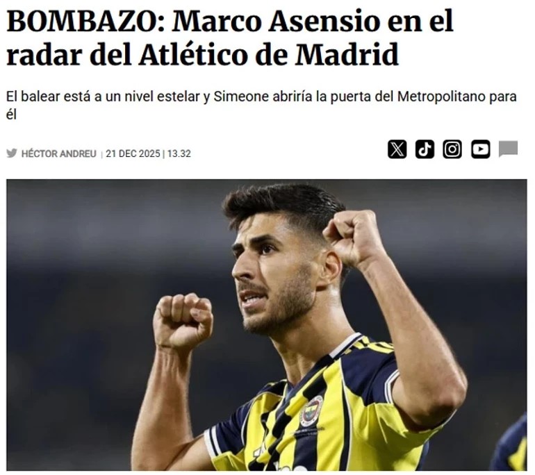 Simeone, Marco Asensio'ya her zaman takdirini dile getirmiştir. Arjantinli teknik direktör, onun yeteneğine; golcülük becerisine ve alanı okuma zekasına değer veriyor. Simeone, Asensio'nun olası gelişini mutlulukla karşılayacak.