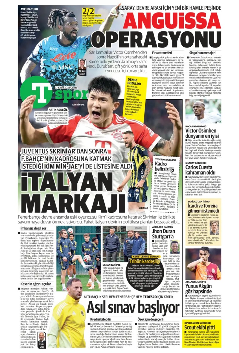 17 Ekim 2025 – Gazetelerde FENERBAHÇE