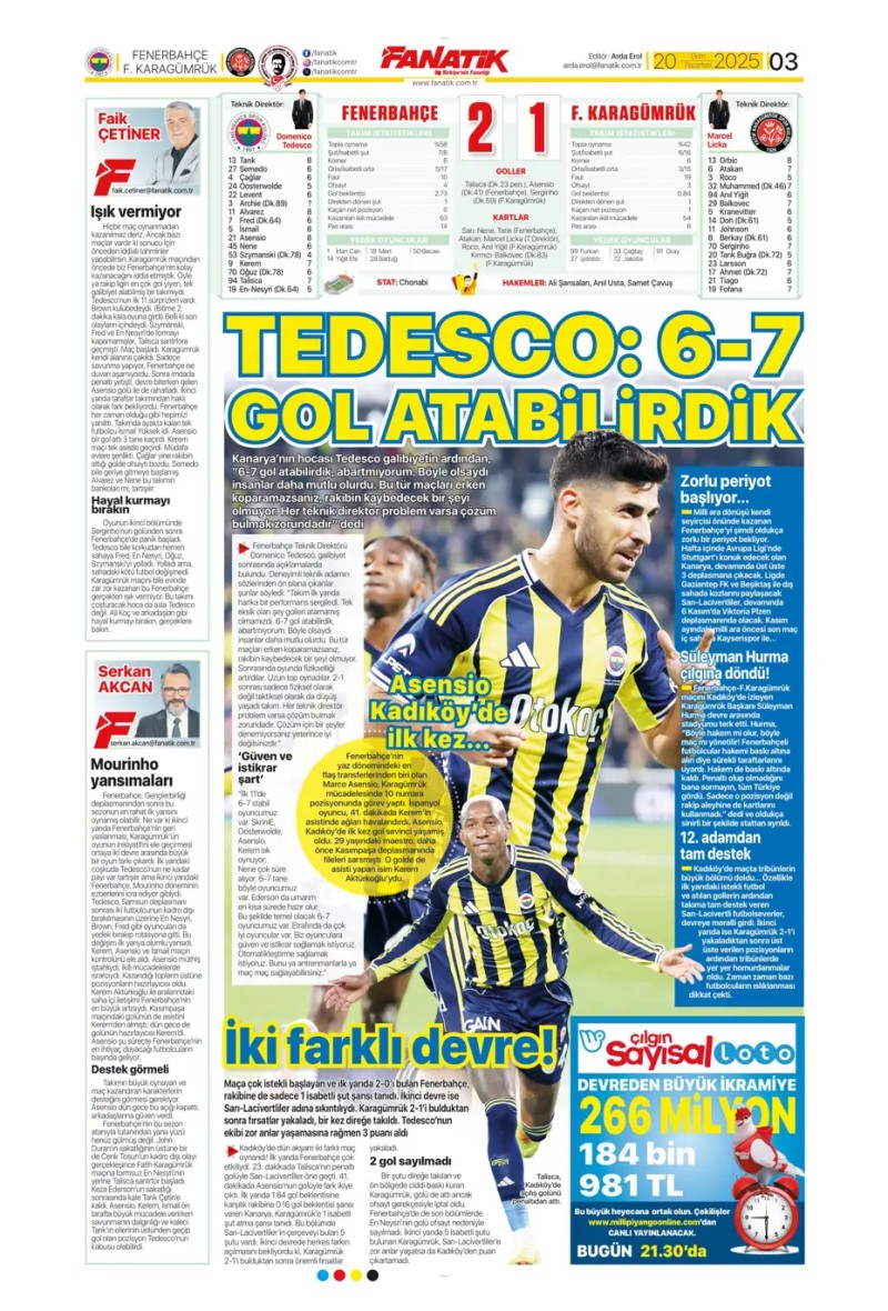 20 Ekim 2025 – Gazetelerde FENERBAHÇE