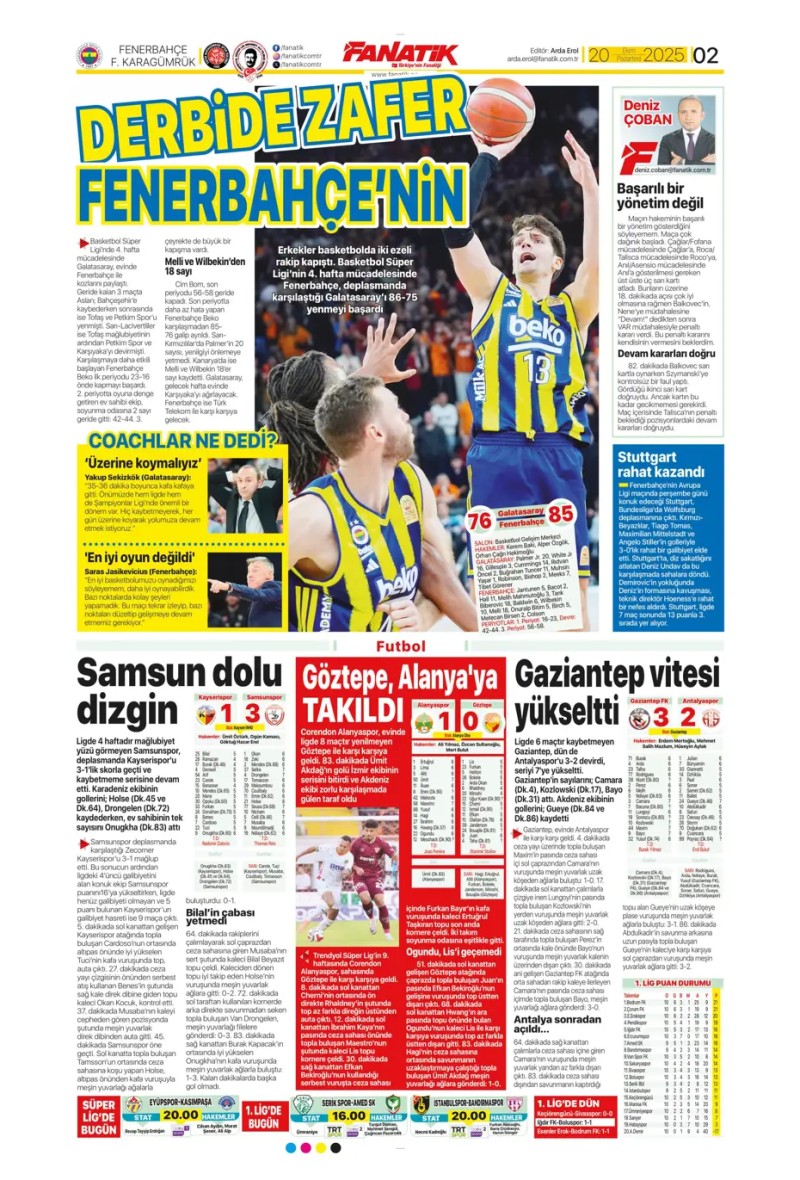 20 Ekim 2025 – Gazetelerde FENERBAHÇE
