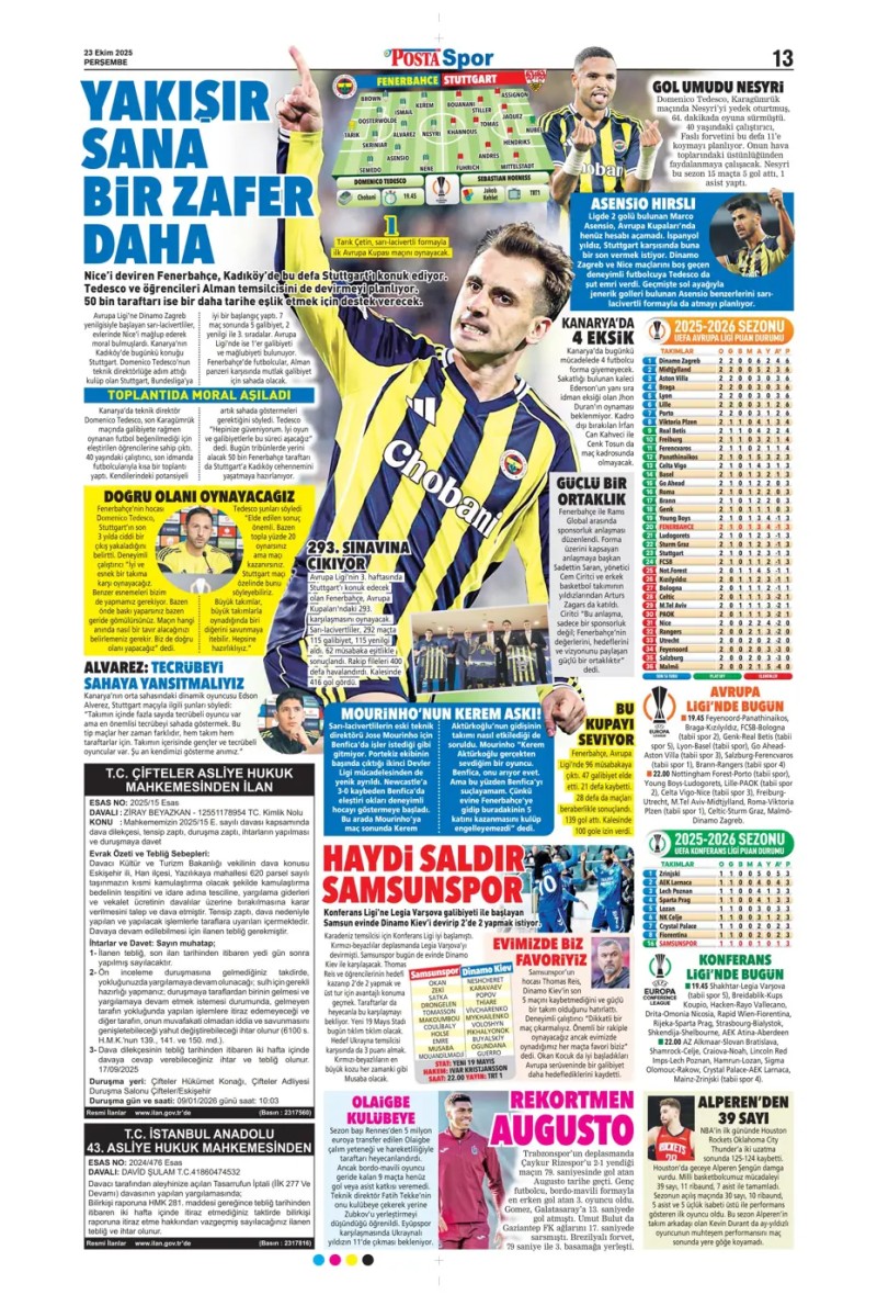 23 Ekim 2025 – Gazetelerde FENERBAHÇE