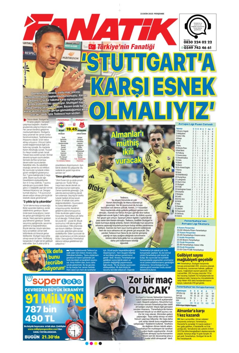 Bugün gazetelerde öne çıkan tüm FENERBAHÇE manşetlerine hızlıca göz atabilirsiniz! FENERBAHÇE manşetleri (23 Ekim 2025)