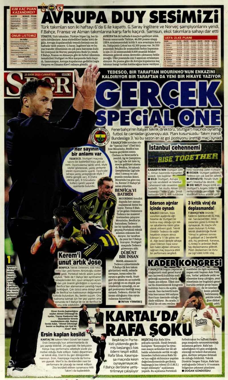 25 Ekim 2025 – Gazetelerde FENERBAHÇE