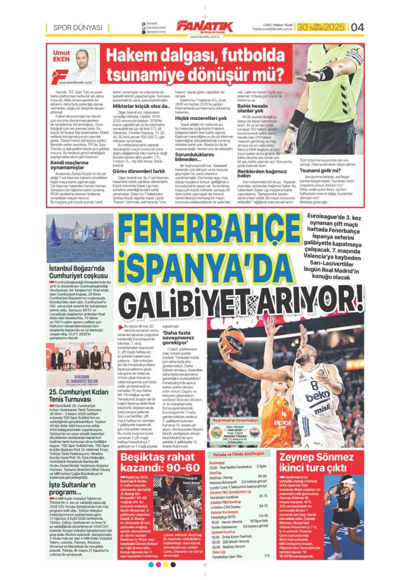 30 Ekim 2025 – Gazetelerde FENERBAHÇE