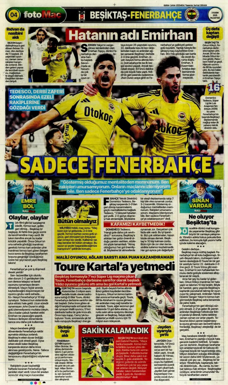 3 Kasım 2025 – Gazetelerde FENERBAHÇE