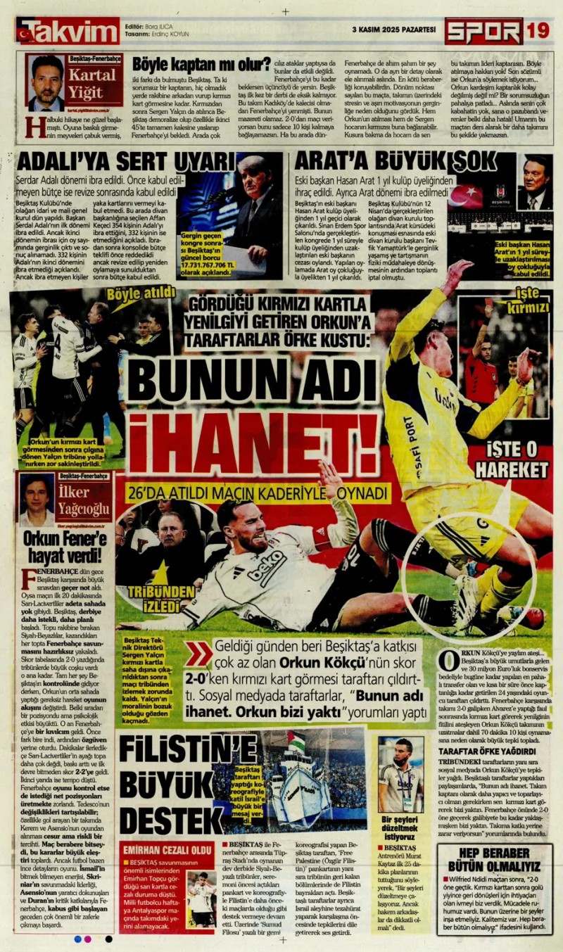 3 Kasım 2025 – Gazetelerde FENERBAHÇE
