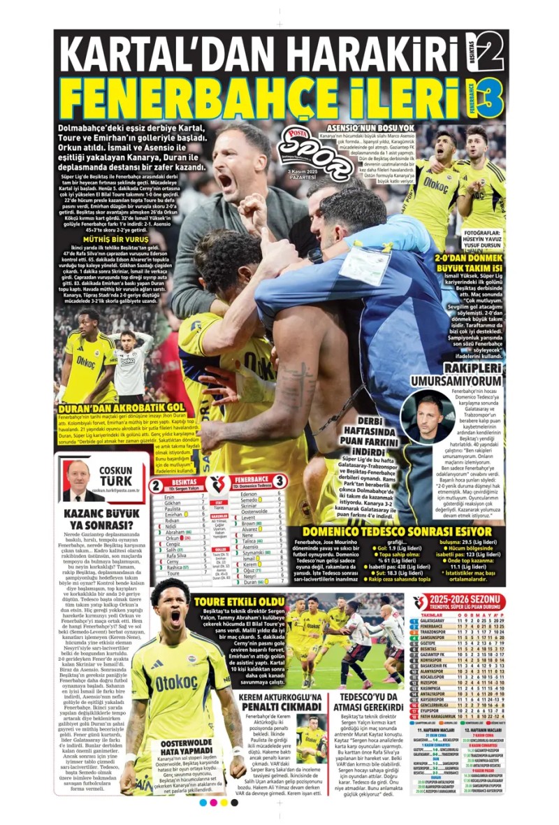 3 Kasım 2025 – Gazetelerde FENERBAHÇE