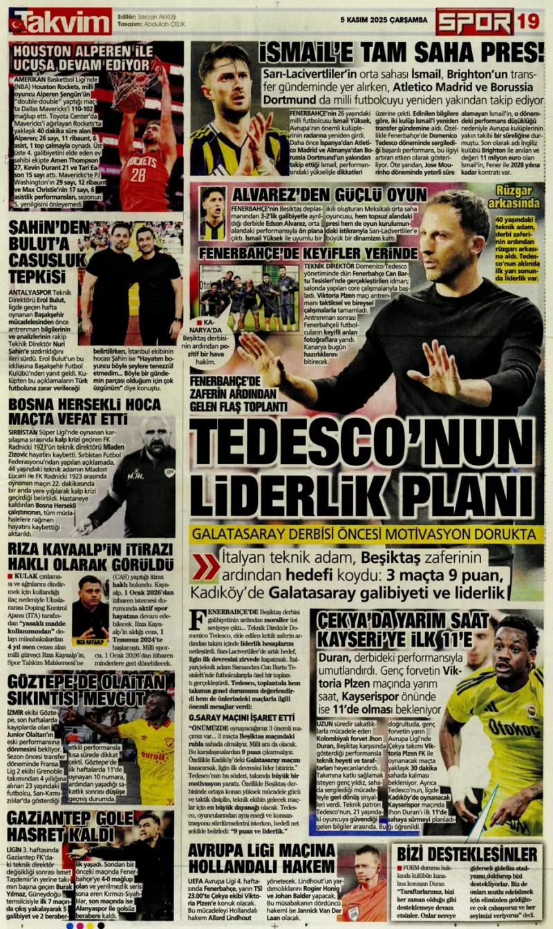 5 Kasım 2025 – Gazetelerde FENERBAHÇE