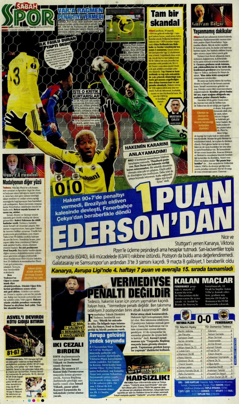 7 Kasım 2025 – Gazetelerde FENERBAHÇE