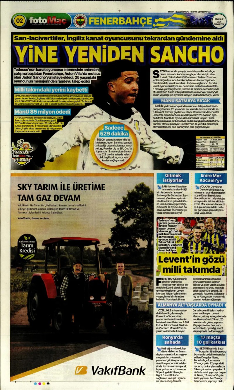 13 Aralık 2025 – Gazetelerde FENERBAHÇE
