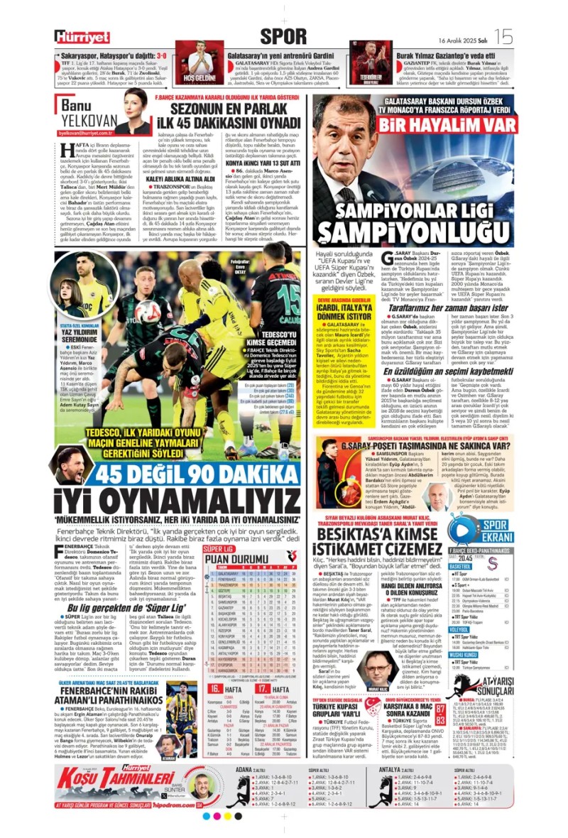 16 Aralık 2025 – Gazetelerde FENERBAHÇE