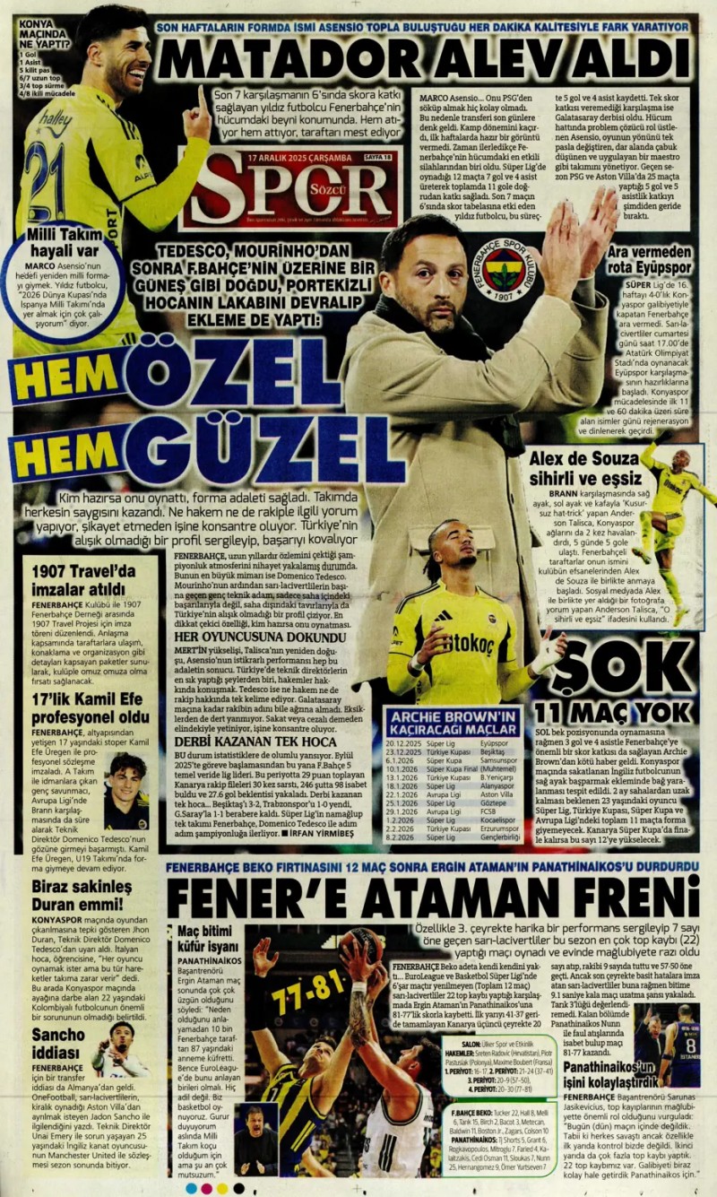 Bugün gazetelerde öne çıkan tüm FENERBAHÇE manşetlerine hızlıca göz atabilirsiniz! FENERBAHÇE manşetleri (17 Aralık 2025)