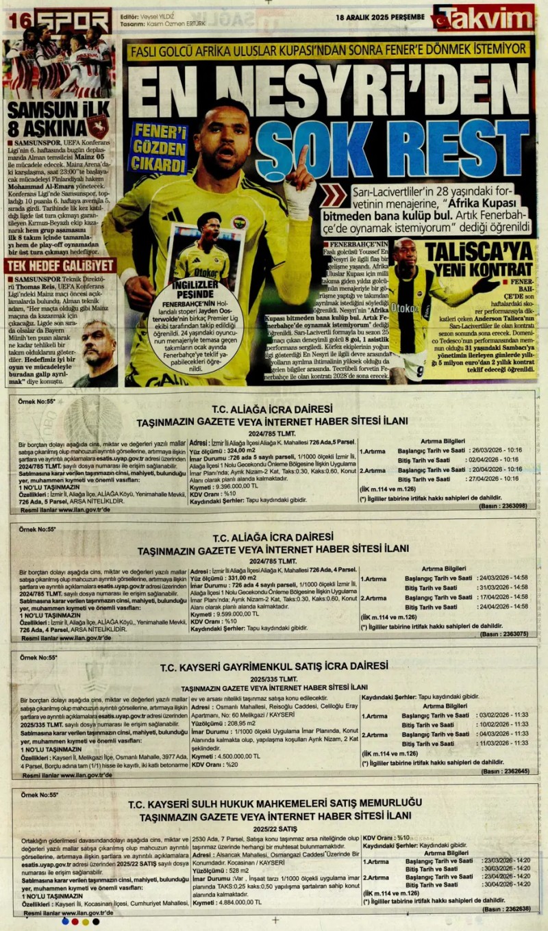 Bugün gazetelerde öne çıkan tüm FENERBAHÇE manşetlerine hızlıca göz atabilirsiniz! FENERBAHÇE manşetleri (18 Aralık 2025)
