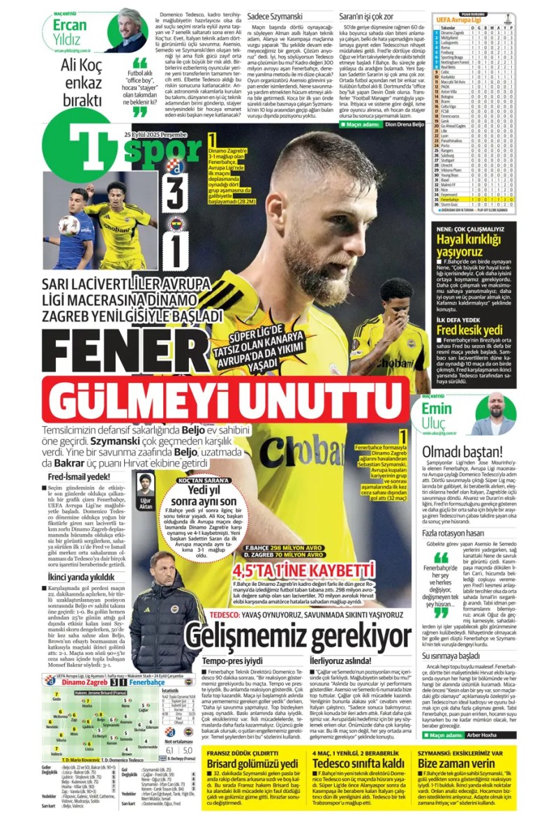 25 Eylül 2025 – Gazetelerde FENERBAHÇE